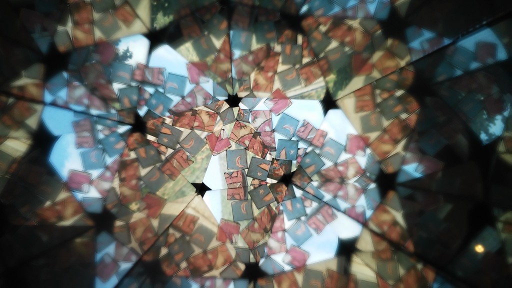 את הקליידוסקופ שלפניכם בניתי מצינור ביוב בקוטר של 5 צול, צינור שכל יעודו להסיע את השפכים מעשה ידינו. קניתי אותו בשבת אחת בבוקר בחנות בואדי ניסנאס. עוקבת אחרי הוראות ההרכבה שמצאתי באינטרנט, כלאתי את האור שנישבה ונישבר אל דפנות המראות שבתוכו, כדי שזה ישוטט לו בין הצבעים והקווים שמשח ומתח מרסל ינקו על פני הבד, מדלג בין 12 הפיסות שפרקתי מן ׳הים האדום׳. את הקליידוסקופ קבעתי בראשו של מעמד שמצאתי נישען אל פח זבל בשכונה, ממתין לסילוקו. מקריות פוגשת כוונה.