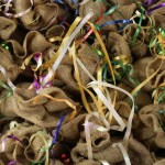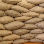 Defending our children is an outmost wish of any parent.  The challenge to accept the fact that it is not in our hands, is very difficult. So I decided to build an army post, well known around in our landscape, made of sand bags which I choose to tie with colorful ribbons that we usually rap around birthday presents.